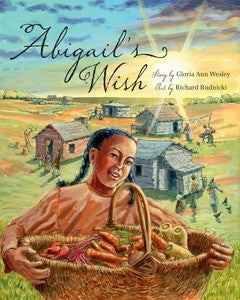 The first children’s picture book set in historic Birchtown, Nova Scotia, Abigail’s Wish is a window into the life of a Black Loyalist family in the early years of the historic colony. Through the eyes of young Abigail, this stunning collaboration between poet and novelist Gloria Ann Wesley and award¬winning illustrator Richard Rudnicki will teach readers about Black Loyalist life, and the value of friendship and patience.