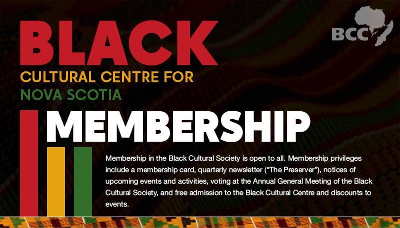 Membership in the Black Cultural Society is open to all. Membership privileges include a membership card, quarterly newsletter (“The Preserver”), notices of upcoming events and activities, voting at the Annual General Meeting of the Black Cultural Society, and free admission to the Black Cultural Centre and discounts to events.